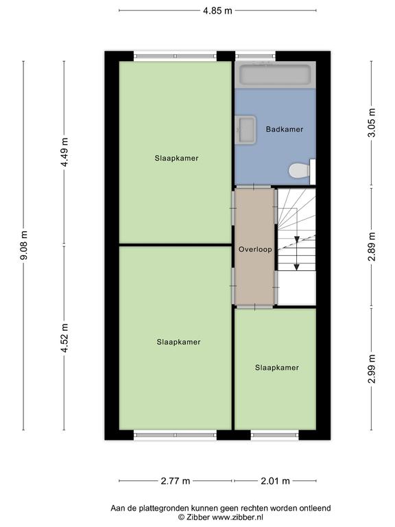 Op de verdieping bevinden zich 3 slaapkamers en een ruime badkamer. Deze is voorzien van een douche-badcombinatie, 2e toilet en wastafelmeubel. Er zijn twee grote slaapkamers van ca. 13 m2. De 3e slaapkamer is ca 6 m2 groot. Alle kamers zijn voorzien van grote ramen waardoor er veel lichtinval is.