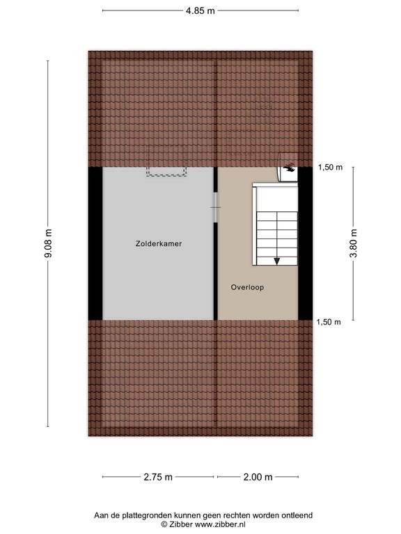 De zolder bestaat uit een voorzolder met wasmachine- en drogeraansluiting en een grote zolderkamer van bijna 20 m2 met Velux-dakraam.