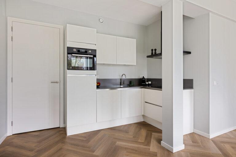 De open keuken sluit mooi aan op de woonkamer en biedt volop mogelijkheden voor een moderne inrichting.