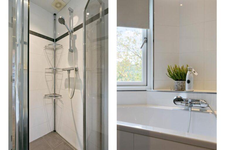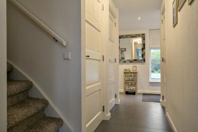 Op de eerste verdieping bevindt zich een comfortabele omgeving met vloerbedekking, waardoor je ook hier geen last hebt van koude voeten! Deze verdieping is strak afgewerkt met stucwerk en deels behangen met een fraaie print. Er zijn drie slaapkamers beschikbaar, waarvan één momenteel dienstdoet als ruime kledingkamer. De badkamer is compact maar compleet uitgerust, met een aparte douche, ligbad, toilet, wastafelmeubel, designradiator en ingebouwde verlichting.