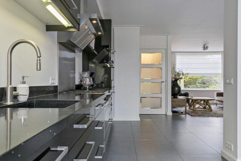 Bij binnenkomst betreed je een ruime en lichte hal, met een royale garderobehoek. De hal biedt toegang tot de meterkast, toiletruimte, trapopgang en een handige kast met aansluitingen voor de wasmachine en wasdroger. De ruime woonkamer is voorzien van een zitgedeelte aan de voorzijde en een eetgedeelte aan de achterzijde, grenzend aan de royale keuken. De moderne keuken is compleet uitgerust met hoogglans zwarte kasten, een granieten werkblad, en inbouwapparatuur, waaronder een 90 cm breed 5-pitsfornuis met een brede oven, afzuigkap, vaatwasser, combi-magnetron, koelkast en aparte vriezer. De woonkamer is afgewerkt met strak stucwerk en mooie grote tegels met vloerverwarming. Een groot dakvenster zorgt voor extra licht in de ruimte. Via openslaande deuren kom je in de heerlijk zonnige tuin, compleet met een ruime stenen berging (2018) en overkapping. Via deze overkapping kom je op het achter-terrein waar voldoende parkeerplaatsen zijn. Door de dubbele deuren kun je ook met gemak met bijvoorbeeld een motorfiets in de achtertuin komen. Ruimte genoeg!