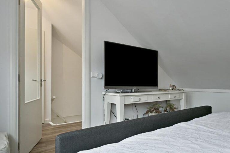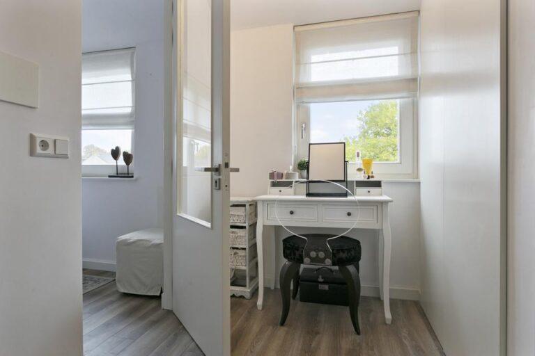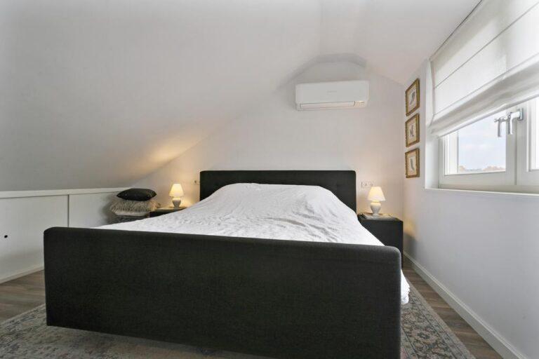 Deze verdieping is helemaal verbouwd. Door het plaatsen van een dakkapel (2020) en ook hier weer de strakke afwerking is een fijne slaapkamer ontstaan die voorzien is van airco. Er zijn in de stijl van de woning veel praktische knieschotten gemaakt en een ruime kast op de hal, dus bergruimte genoeg! De vloer is voorzien van laminaat.