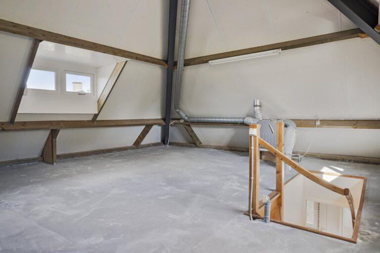 Via een vaste trap bereik je de enorme zolder die nog naar eigen idee is in te delen. Nu is het een grote open ruimte met 2 dakkapellen, maar wellicht wil je hier 2 slaapkamers van maken. Dit is gemakkelijk mogelijk, en dan hou je zeker nog genoeg bergruimte over. Misschien wil je nog wel een bergzolder maken in de hoge nok?