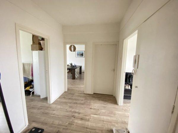 Een ruime zonnige woonkamer met een schilderij van Cobra-Art in plexiglass. Het appartement is verder bijzonder licht en heeft een deur naar het balkon. Overigens, er is ook een deur in de tweede slaapkamer naar het terras.
