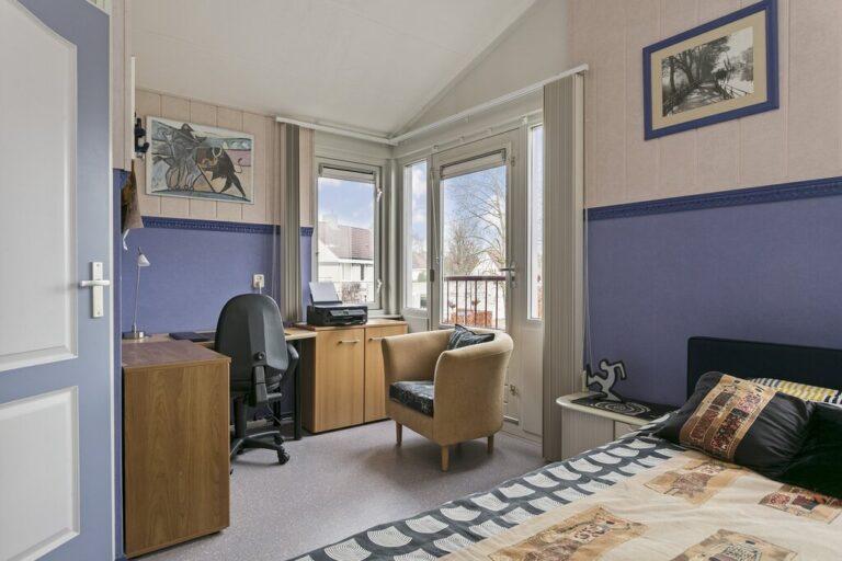 De slaapkamers van gelijke grootte zijn afgewerkt met een Novilon vloer, wanden deels gestuct en deels lambrisering en een spuitwerk plafond. De slaapkamers hebben beide een goede lichtinval en beschikken over een frans balkon. De aan de voorzijde gelegen slaapkamer geeft toegang tot een inpandige berging met ketelopstelling. Vanuit hier hebben we toegang tot een kleine vliering.