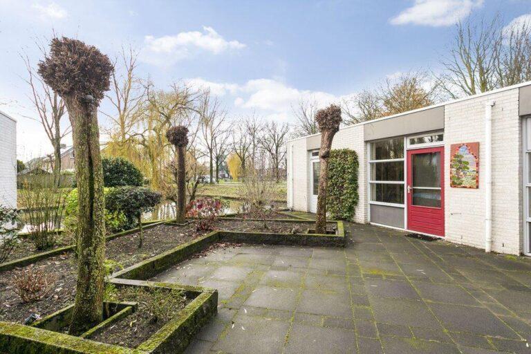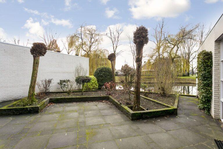 Achter de woning bevindt zich een nette tuin van goed formaat en veel privacy. Aan de achtergevel van het huis vinden we een lekker groot terras (met zonneluifel). De tuin is verder aangelegd met strakke borders met diverse soorten vaste beplanting, struikjes en boompjes. Dit is de perfecte plek om heerlijk tot rust te komen op een mooie zomerdag, voor de liefhebber met de mogelijkheid om vanuit de eigen tuin nog een hengeltje uit te gooien.