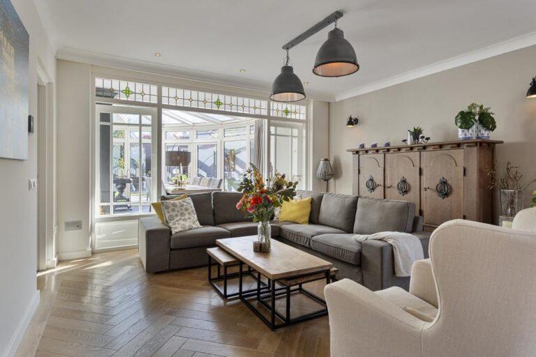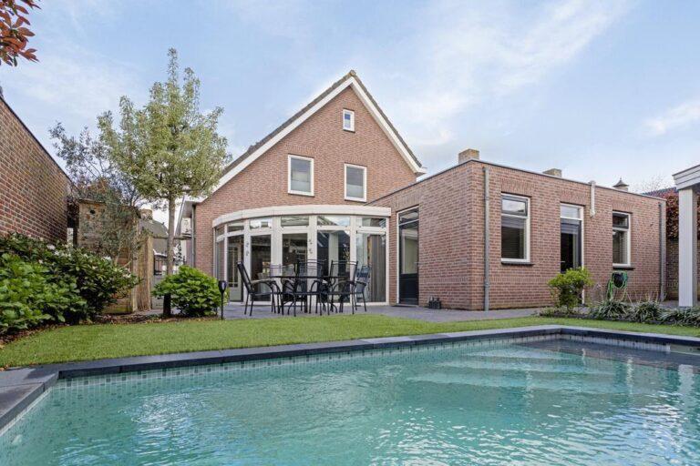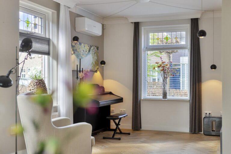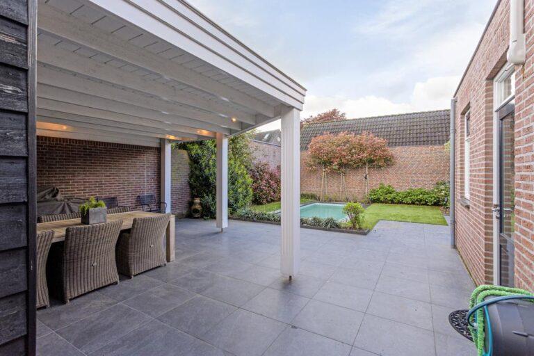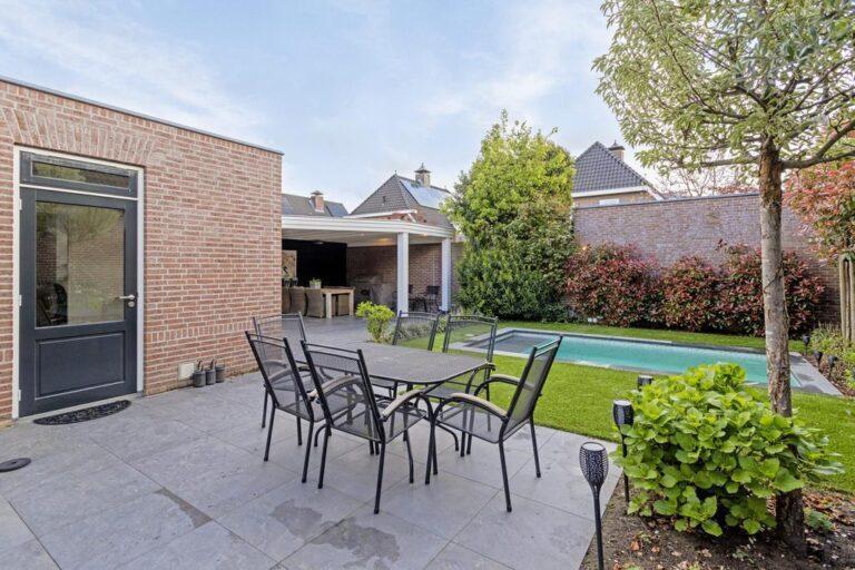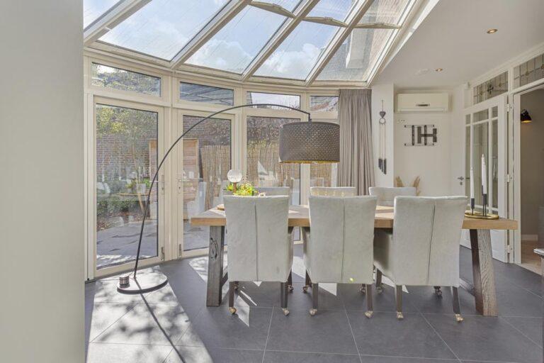 Comfort en sfeer: airco op diverse plaatsen, sfeervolle glas-in-lood-bovenlichten, visgraat vloeren, zwembad (2020) voor de sportiviteit en ontspanning én een privacy biedende tuin.