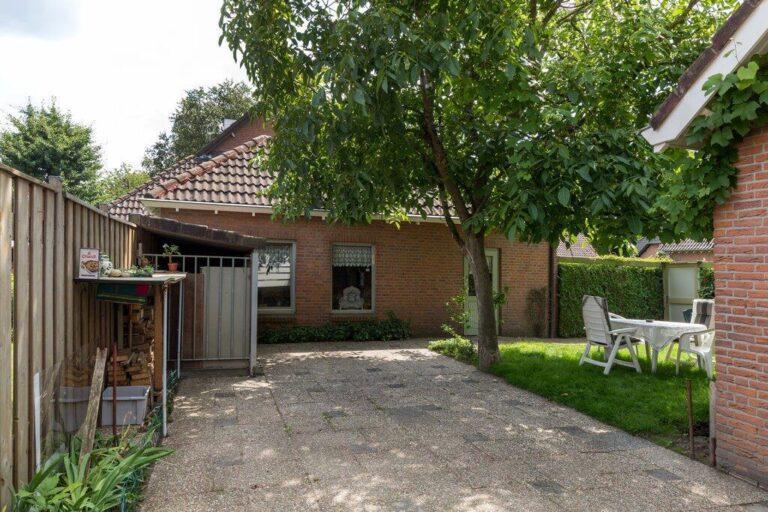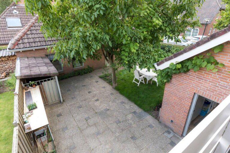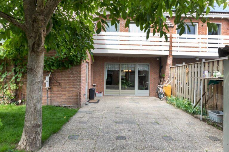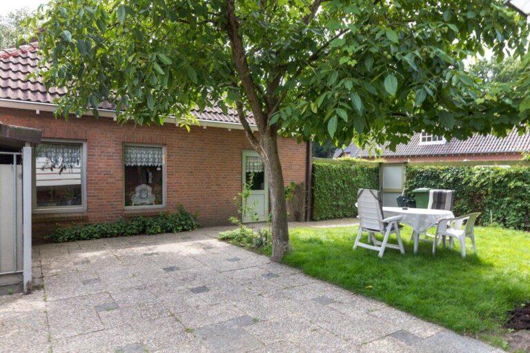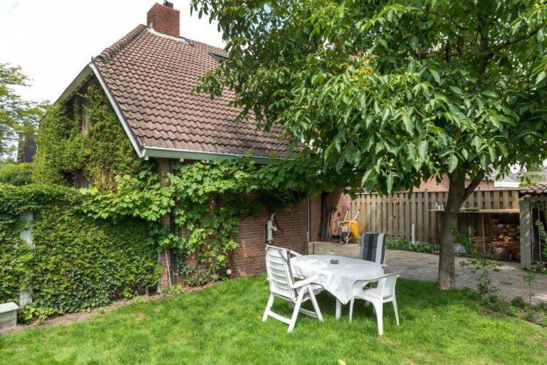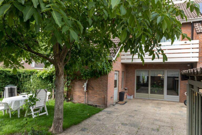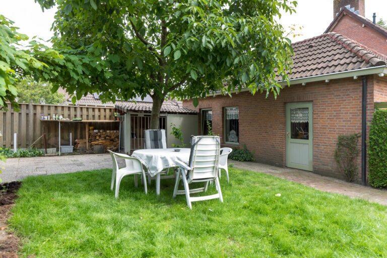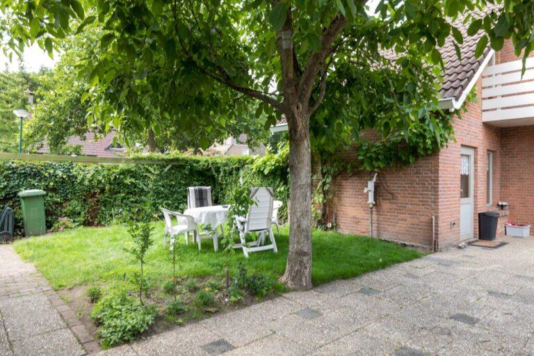 Achter het huis vinden we nog een fraaie en lekker ruime tuin. Deze is aangelegd met een ruim terras vanaf de achtergevel, een fraaie loofboom in het hart van de tuin, een fijn gazon en kleine borders voor wat vaste beplanting. De tuin is grotendeels omringd door groene hagen.