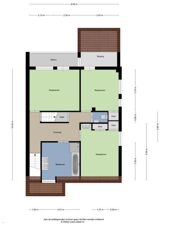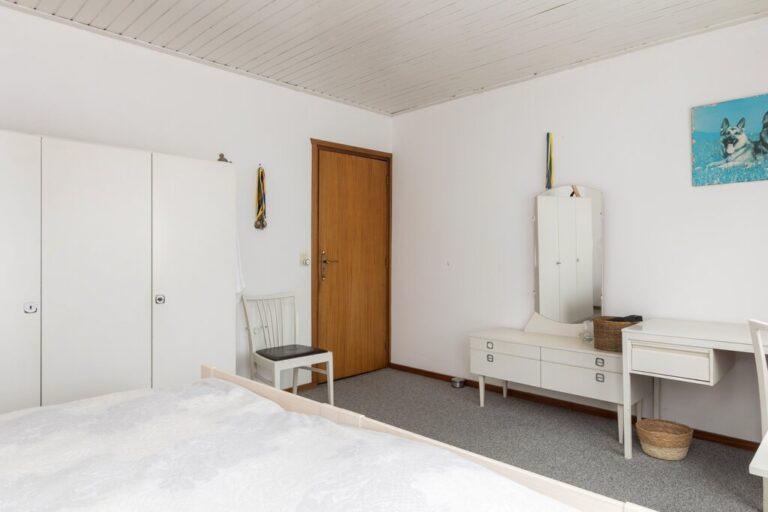 Van de drie slaapkamers zijn er twee gelegen aan de achterzijde van de woning. Van de slaapkamers aan de achterzijde heeft de één toegang tot het balkon en de ander tot een ruime bergruimte (deze tover je om tot kleedkamer). De slaapkamers zijn allen afgewerkt met vloerbedekking, deels gestucte en deels schoonmetselwerk wanden en verlaagde plafonds.