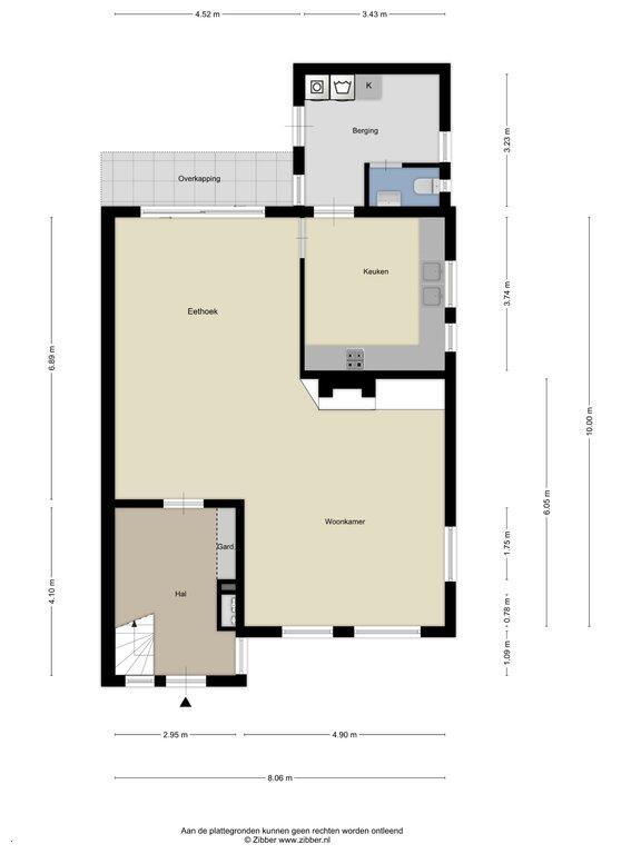 De entree aan de voorzijde brengt ons in de ruime hal met meterkast, trapopgang en garderoberuimte. De hal geeft toegang tot de Z-vormige woonkamer.
