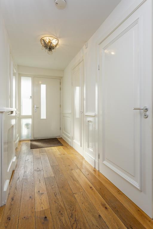 Dit zie je je al in de brede en lichte hal met fraaie lambrisering, de vloeren, de radiator ombouwen en de verder afwerking en details in het gehele appartement.