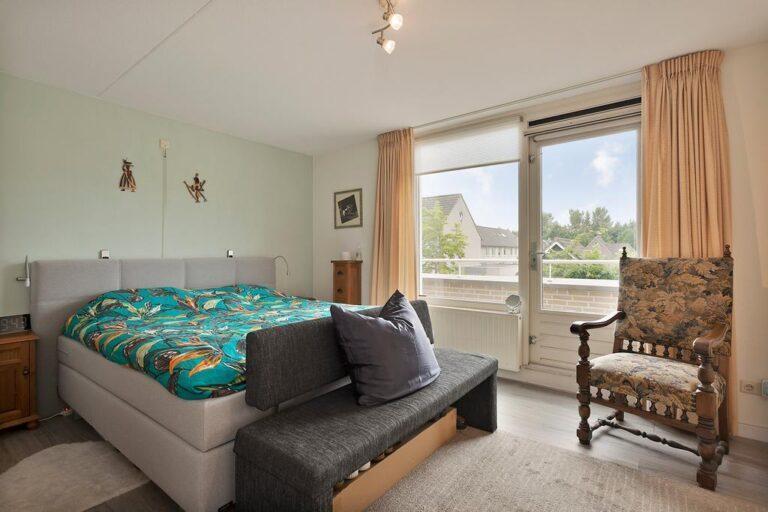 Aan de voorzijde van de woning vinden we de enorme ouderslaapkamer. Wat een fijne kamer met een fraaie vaste kastenwand en toegang tot het balkon. De overige twee kamers zijn gelegen aan de achterzijde van de woning en hebben leuke speelse raampartijen. De kamers zijn allen afgewerkt met een fraaie laminaat vloer, spuitwerk plafonds en gestucte wanden.