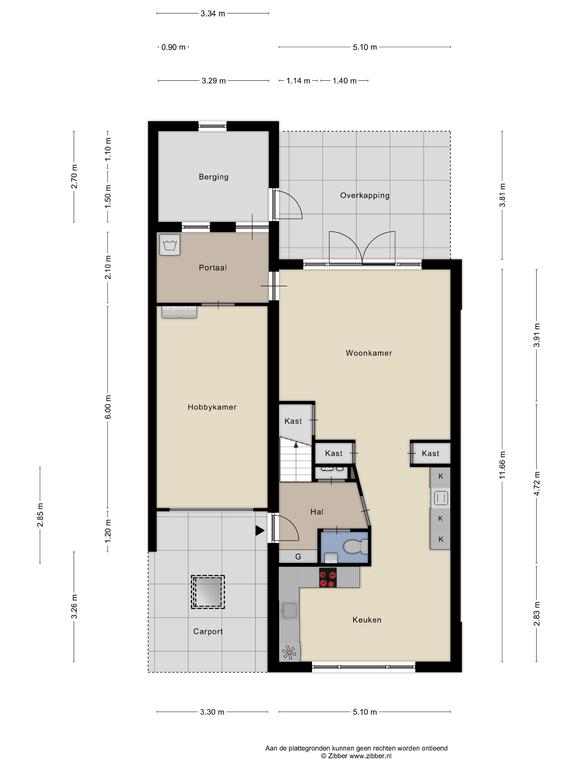 Via de aan de voorzijde gelegen overdekte entree hebben we toegang tot zowel de hal als de garage.