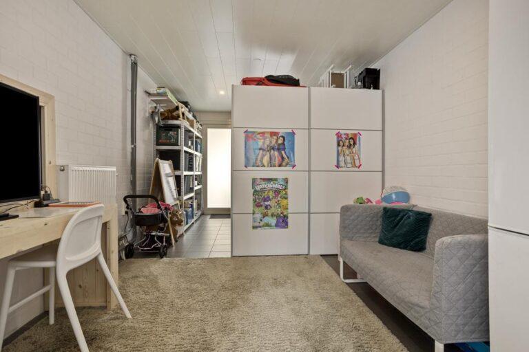 De (voormalige) garage is netjes afgewerkt met een tegelvloer en verwarmd. Dat maakt hem uitermate geschikt om te gebruiken als thuiswerkplek, hobbyruimte, chillroom etc.