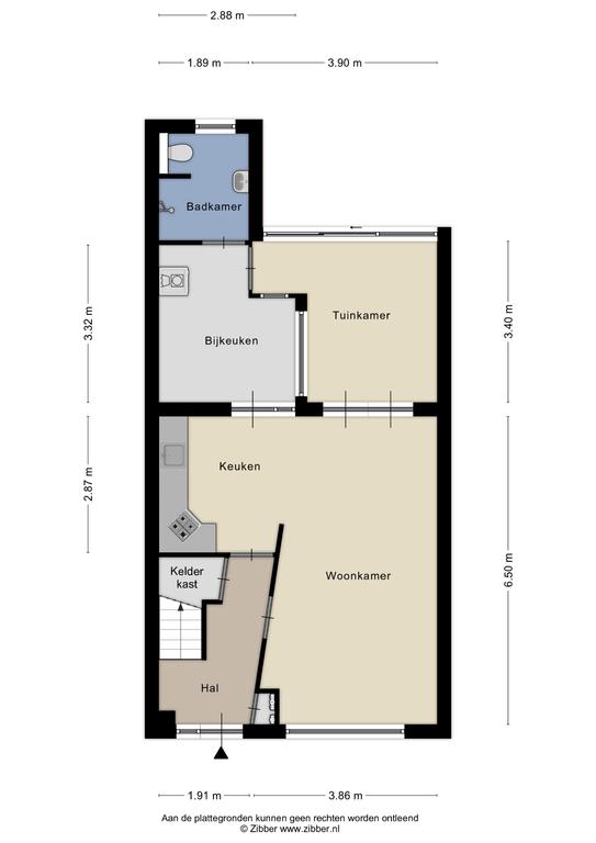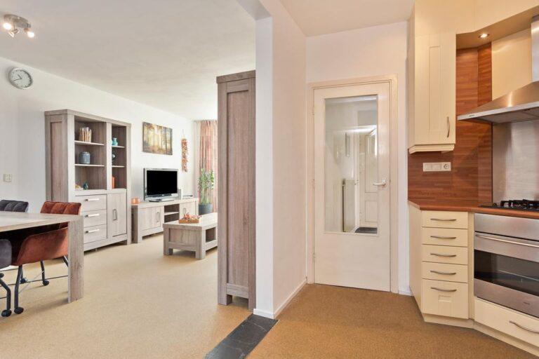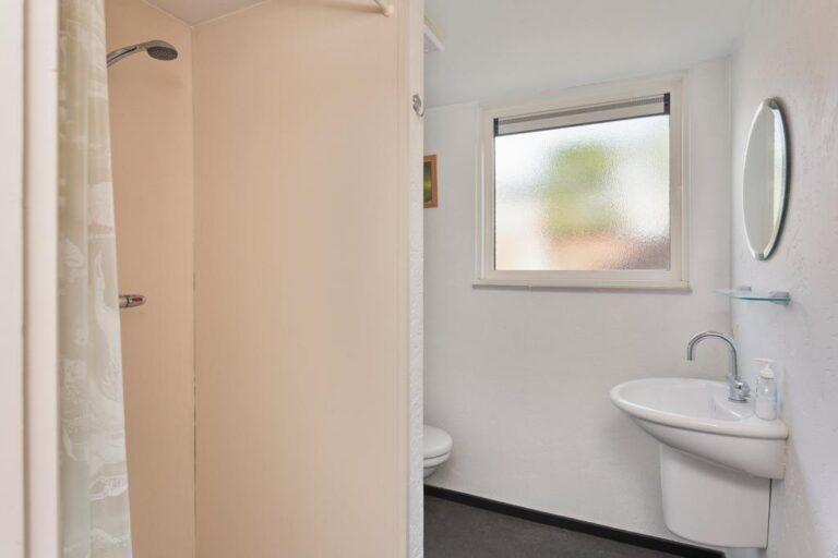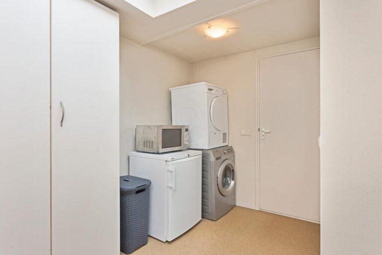 De handige bijkeuken met vaste kastenwand (en geiser) is een mooie plek voor het opbergen van je wat grotere spullen en voorraad en doet tegelijkertijd dienst als wasruimte. De bijkeuken geeft toegang tot de badkamer c.q. toiletruimte. De aanwezigheid van deze badkamer op de begane grond en de uitbouw maken het, met enkele aanpassingen, ook mogelijk om hier gelijkvloers te gaan wonen.