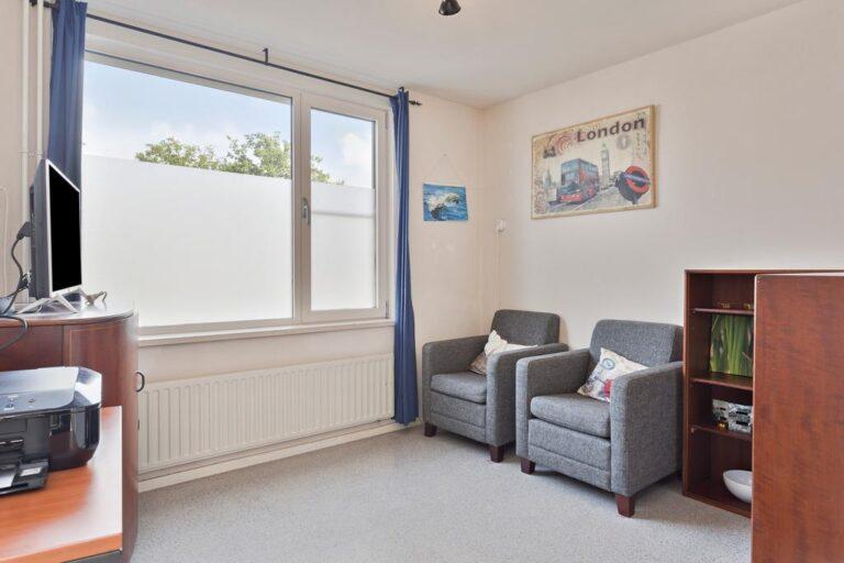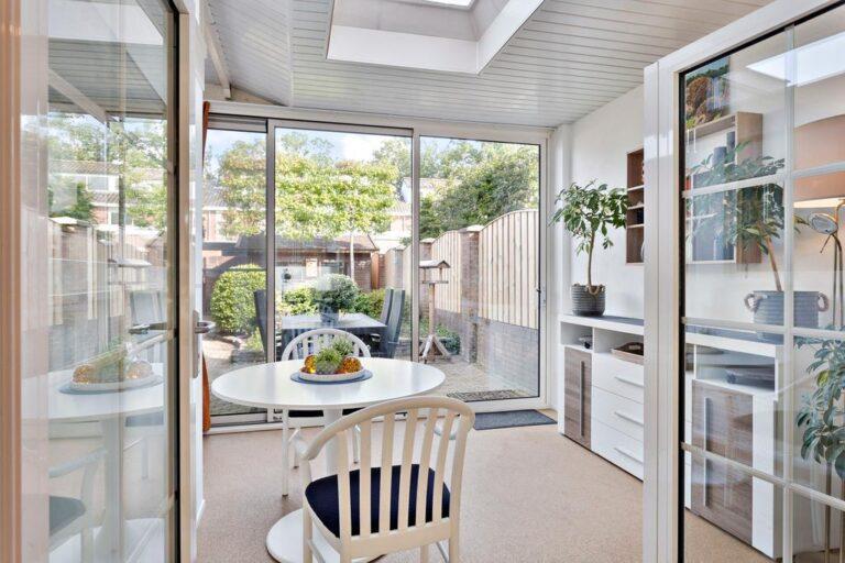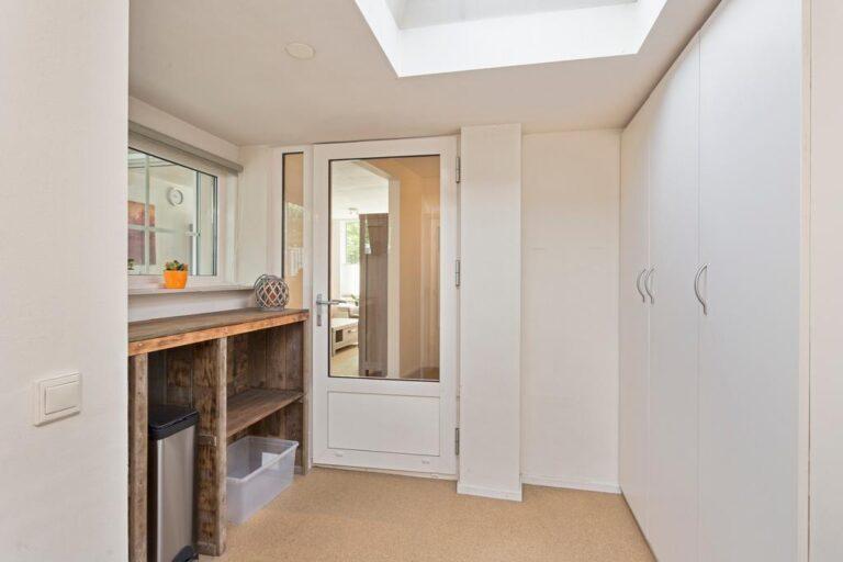 De tuinkamer is heerlijk licht door de aanwezigheid van bovenlichten en grote raampartijen. Wat is er nu fijner dan zo’n extra multifunctionele kamer op de begane grond? Dit is de plek voor bijvoorbeeld een chillroom voor de kids of een werk-/hobbykamer! ’s Zomers gaat de schuifpui open en genieten we van de tuin!