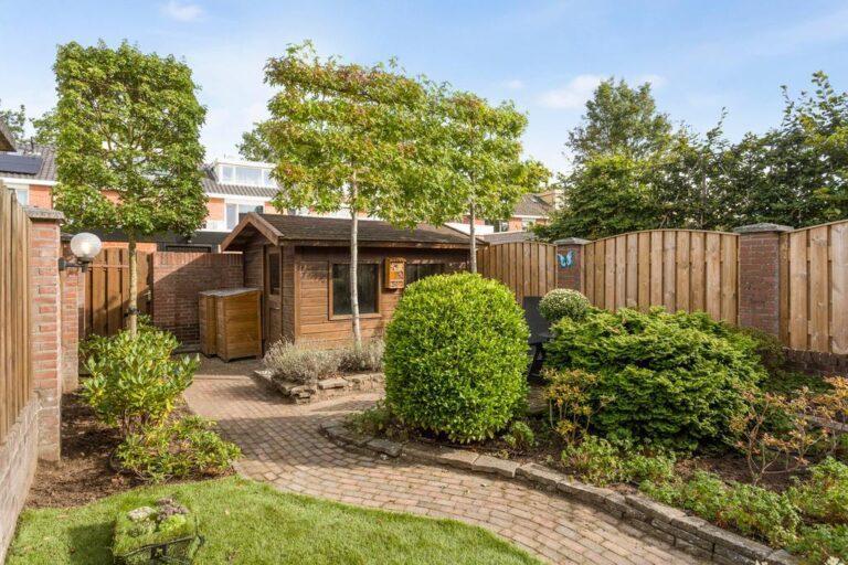 Achter het huis vinden we ook nog eens een super fijne tuin! De riante tuin is gelegen op het noorden, maar heeft door zijn afmetingen en verschillende afmetingen altijd wel een plekje in de zon. De tuin is aangelegd met een fraai slingerpad die de terrassen met elkaar verbindt, flinke borders met allerlei soorten vaste beplanting, boompjes, struiken, beregening en een klein gazonnetje. Achter op het perceel vinden we nog een riante houten tuinberging en de achterom.