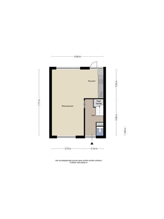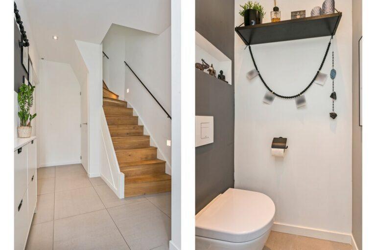 We betreden de woning via de hal met trapopgang, trapkast, meterkast en toiletruimte. Vanuit de hal hebben we toegang tot de woonkamer.