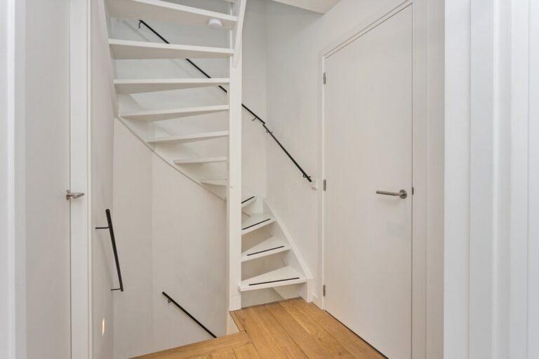 Een vaste trap brengt ons op de overloop van verdieping één. De overloop geeft toegang tot een drietal slaapkamers en de badkamer.