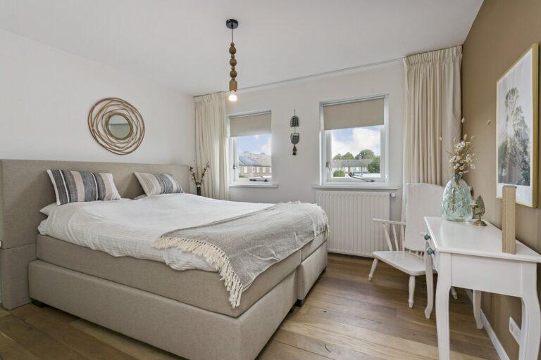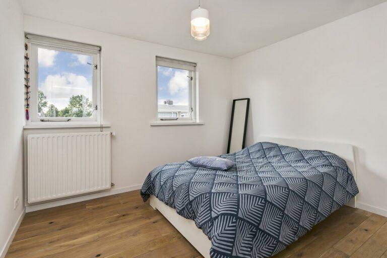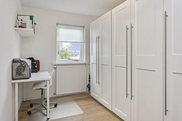 De slaapkamers zijn prettig ruim en netjes afgewerkt met onder andere een fraaie eiken houten vloer. Twee slaapkamers beschikken over een ruime inbouwkast, de derde slaapkamer doet momenteel dienst als kantoor-/kleedkamer.