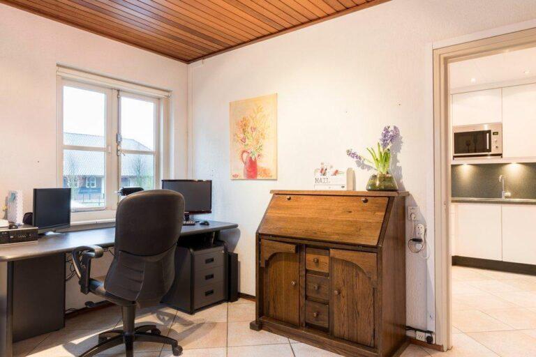 In het kantoor aan de voorzijde van de woning is het fijn werken, in alle rust en met zicht naar de voorzijde en oprit. Uiteraard leent deze ruimte zich evengoed als hobbykamer of chillroom.