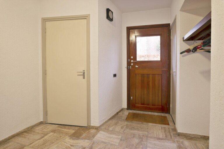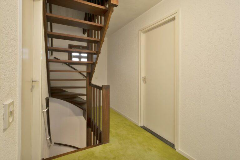Via de entree van de woning betreden we de ruime hal met meterkast, garderoberuimte, toiletruimte en trapopgang. Vanuit de hal vervolgen we onze weg naar de woonkamer.