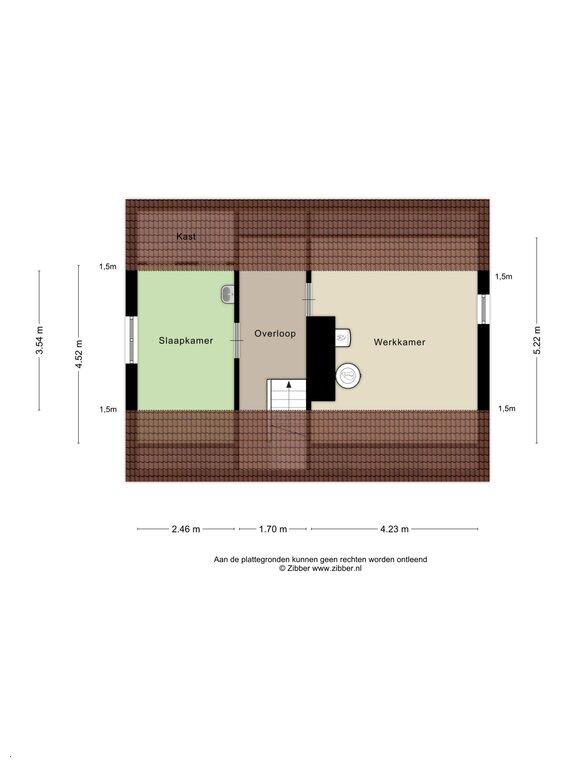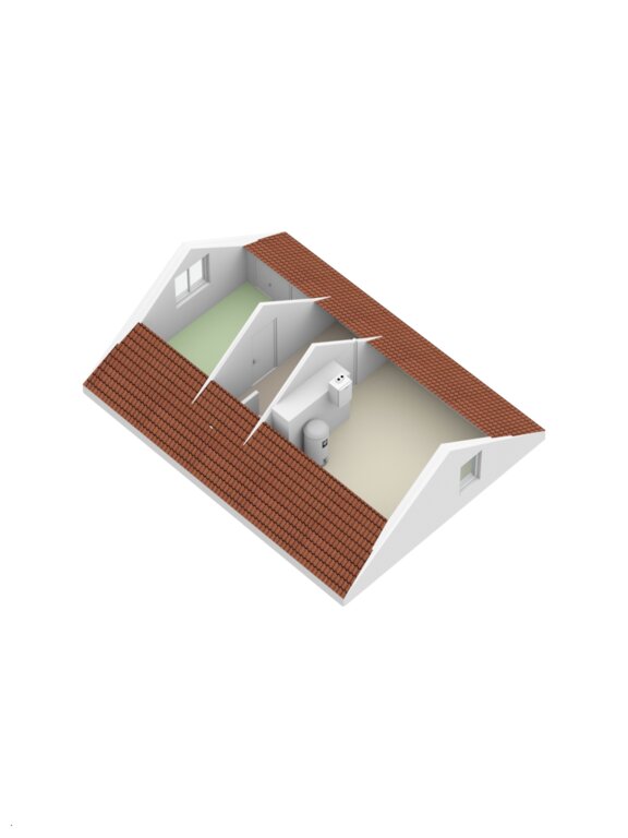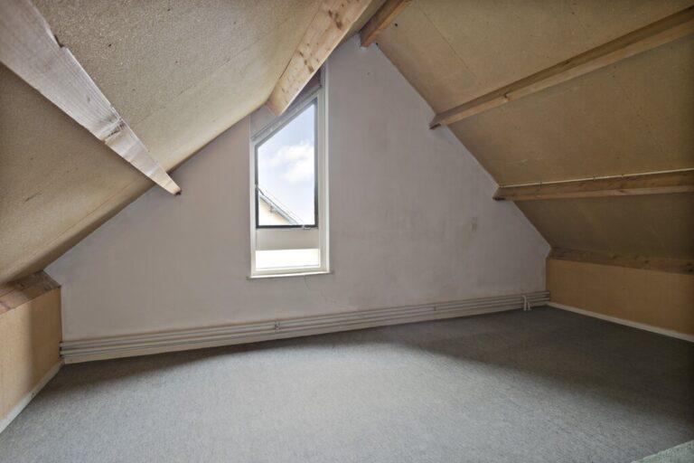 Nog een vaste trap brengt ons op de overloop van verdieping twee. De overloop geeft toegang tot een goede 5e slaapkamer en een ruime zolderkamer. De zolderkamer is ook de plek waar we de ketelopstelling vinden.