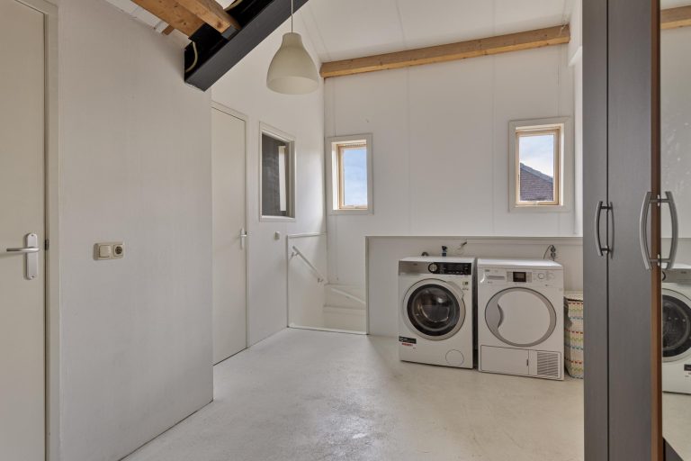 Middels een vaste trap bereik je de ruime overloop van de tweede verdieping. Hier vind je tevens wat extra bergruimte en de aansluitingen voor de wasmachine en droger. Deze verdieping biedt nog twee extra slaapkamers, perfect voor tieners, gasten of als kantoorruimte. Deze kamers hebben beide nog een trap naar de vide, ideaal als slaapruimte. In één slaapkamer bevindt zich tevens de stookruimte.