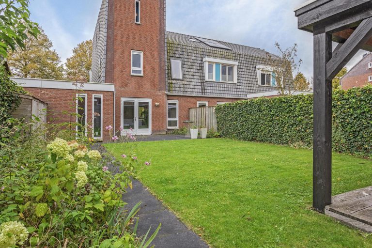 De woning beschikt over zowel een voor- als achtertuin. Aan de voorzijde bevindt zich een oprit voor het parkeren van je auto. De ruime en onderhoudsvriendelijke achtertuin is gelegen op het noordoosten, waardoor je gedurende de dag kunt genieten van zowel zon als schaduw. Achterin bevindt zich een sfeervolle overkapping waar je heerlijk droog kunt loungen. Aan de zijkant van de tuin is er nog wat extra opbergruimte gecreëerd.