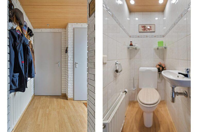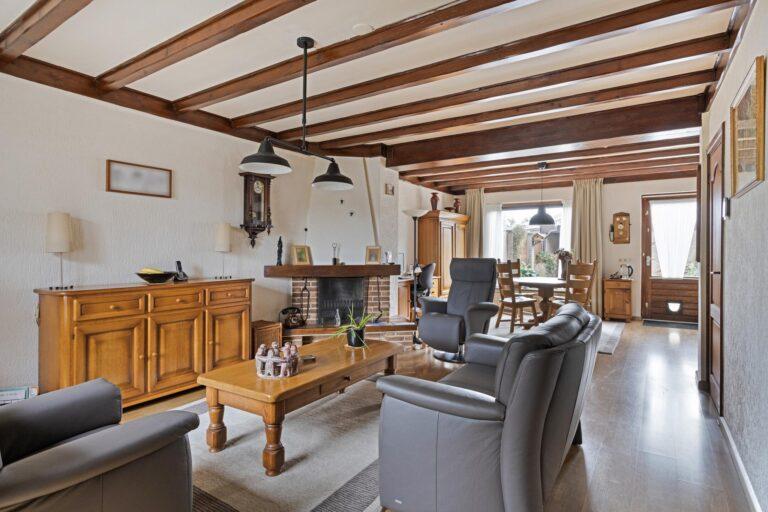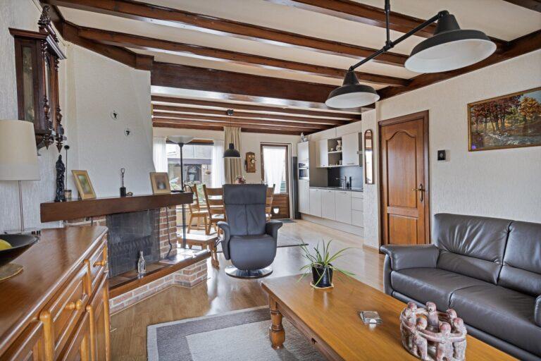 Bij binnenkomst word je verwelkomd in de hal, waar zich het toilet en de provisieruimte bevinden. De lichte woonkamer met open haard straalt warmte en gezelligheid uit. De open keuken is voorzien van moderne apparatuur en biedt middels de achterdeur toegang tot de zonnige achtertuin.