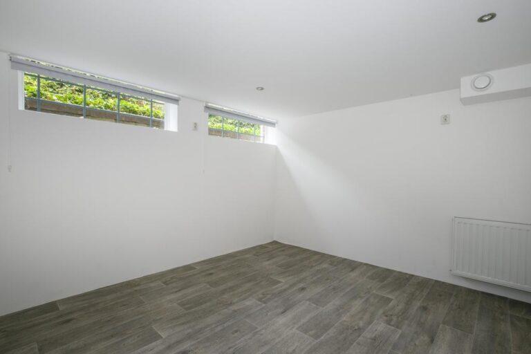 Het souterrain bereikt u via de trap in de hal, maar is ook van buitenaf bereikbaar. Wellicht wilt u deze ruimtes gaan gebruiken voor kantoor/beroep aan huis, of als logeerruimte. De grootste van de twee (slaap)kamers is circa 21 m2 groot en voorzien van 3 hoog geplaatste ramen, de vloer is voorzien van een pvc in fraaie houtlook, gestucte wanden en plafond. De andere kamer (13 m2) is nog steeds ruim te noemen, pvc vloer en gestucte wanden en plafond. Voor de lichtinval zijn er hier 2 ramen. In het souterrain bevindt zich ook nog een ruime technische ruimte met wasmachine aansluiting en een separate opbergkast.
