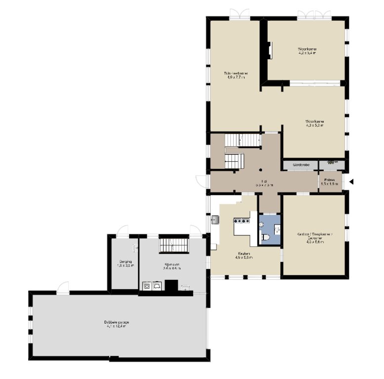 Schitterende hal/entree met fraaie trappartij met een geweldige doorkijk en prachtige glas-in-loodramen, een garderobe, toiletruimte met zwevend toilet, urinoir en wastafel. De ruime woonkamer is voorzien van een prachtige visgraat parket vloer, veel daglichttoetreding, een sfeervolle open haard en authentieke “en suite” schuifdeuren. Tevens is er fraai tuincontact middels de openslaande tuindeuren. Naast de woonkamer bevindt zich een 2e woon-/tuin-/eetkamer met wederom veel daglichttoetreding door de grote raampartijen met heerlijk uitzicht op de achtertuin. Verder een multifunctionele extra kamer op de begane grond (met vloerverwarming) te gebruiken als bijvoorbeeld kantoor, praktijk of gelijkvloerse slaapkamer. De woonkeuken (met vloerverwarming) is een genot voor de kookliefhebber; een heerlijke ruimte met een combinatie in meerdere delen met veel kastruimte, een kookeiland en diverse inbouwapparatuur, waaronder een Amerikaanse koelkast met vriezer, oven, stoomoven, fornuis met grill/bakplaat, gaskookplaat, keramische kookplaat, afzuigkap en een vaatwasser. Vanuit de keuken komt u in de riante bijkeuken met witgoedaansluitingen en toegang tot de 2e kelder. Verder vanuit de bijkeuken de (2e) trapopgang naar de 1e verdieping van de aanbouw met een zolderkamer. De bijkeuken geeft verder praktisch inpandig toegang tot de grote dubbele garage (ruim 50m2!), voorzien van water, elektra, verwarming en een elektrische poort. Verder is er een via de tuin toegankelijke berging met spoelbak aanwezig.