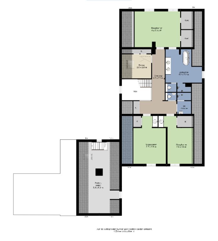 Ruime overloop met vide, kastruimte en toegang tot nog 4 slaapkamers. De grote master bedroom heeft 2 eigen inloop garderobes en geeft toegang tot de 1e badkamer met een ligbad met whirlpool, douchecabine, zwevend toilet en dubbele wastafel met meubel. Verder op deze woonlaag nog een aparte toiletruimte met zwevend toilet en fonteintje en een 2e badkamer met douche en wastafel. De overige 3 slaapkamers hebben tevens eigen kastenwanden. 2 kamers hiervan hebben nog een eigen wasgelegenheid met wastafelmeubel.