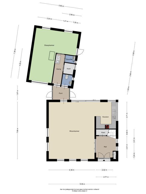 Via een tussenportaal, die ook van buitenaf bereikbaar is, bereik je royale L-vormige slaapkamer van bijna 32m2, separaat toilet en badkamer met douche. Verder bevindt zich daar nog een ruime bergkast en tref je daar de witgoedaansluitingen. Dit gedeelte van de woning is ook direct van buitenaf bereikbaar zodat deze ook geschikt is voor kantoor aan huis of voor bijvoorbeeld als guesthouse.
